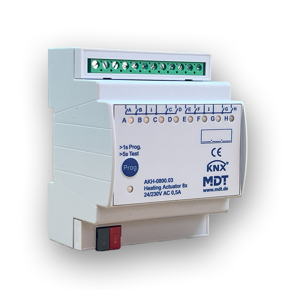 Durch Optimierung der AKK Serie benötigt der MDT Aktor trotz seiner 10A Schaltlast nur 2TE zum Verteilungseinbau. Dies schafft Platz und spart Kosten bei der KNX Genäudeautomation.