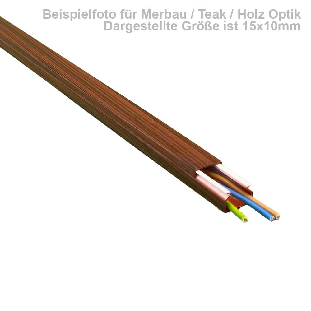 Dekorativer Kabelkanal in Holz Optik Merbau / Teak für eine stilvolle Aufputz Elektroinstallation auf Holz. Ein dekorativer Kabelkanal ist vielseitig einsetzbar und paßt zu zahlreichen Holzwänden, abe...